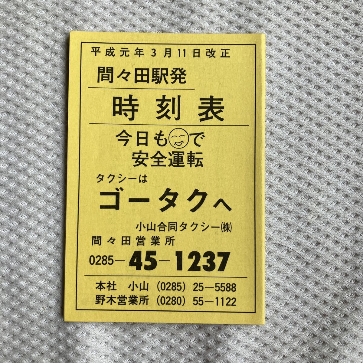 - 【平成元年3月11日改正】間々田駅ポケット時刻表 小山合同タクシー ゴータク JR東日本