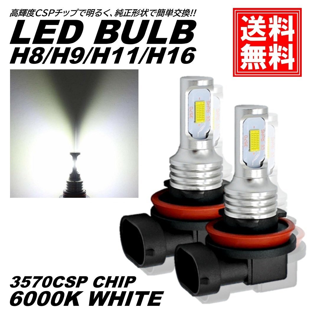 > 高輝度 LED フォグランプ H8/H9/H11/H16 6000K ホワイト フォグライト ファンレス 高輝度CSPチップ DC12V ポン付け