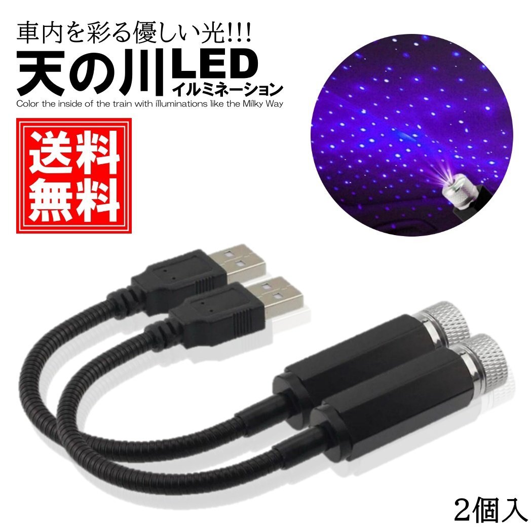 > LED イルミネーション ライト 青紫 天の川 LEDライト USB 給電 ネオン 複数パターン 星空投射 雰囲気 車内装飾 2個入