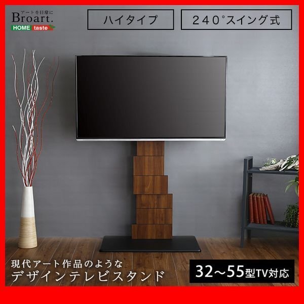 - テレビ台★アート作品のような デザインテレビスタンド/ハイ 高さ調整可/ワイドスイング/32~55インチ/シャビーオーク ウォールナット/zz