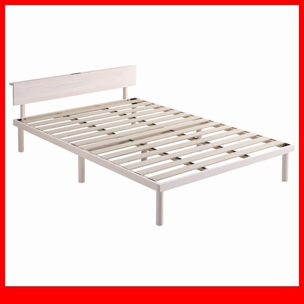 - ベッド★新品/宮付き パイン材高さ2段階調整脚付きすのこベッド ダブル/通気性 耐久性 頑丈 低ホルムアルデヒド/ホワイトウォッシュ/a4