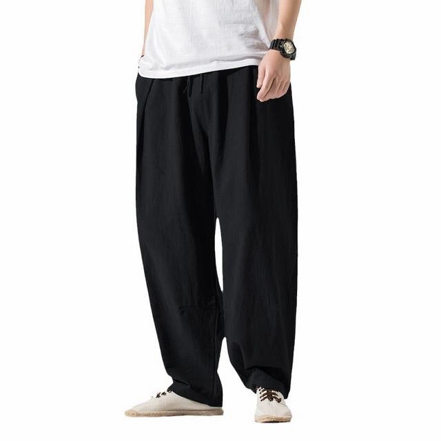 - ワイドパンツ メンズ カジュアル バギーパンツ サルエルパンツ 春物ボトムス 無地 イージーパンツ リラックス 涼しい パンツ ブラック2XL