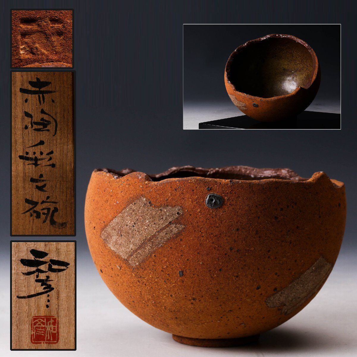 【佳香】佐藤和彦 赤陶彩文碗 茶碗 共箱 茶道具 本物保証拍卖