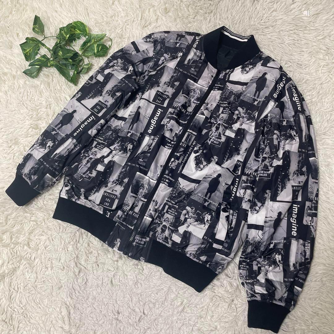 > 美品 ILLS 中綿ジャケット リバーシブル 2way ユニーク 総柄 黒 風景 メンズ ジップアップ Mサイズ
