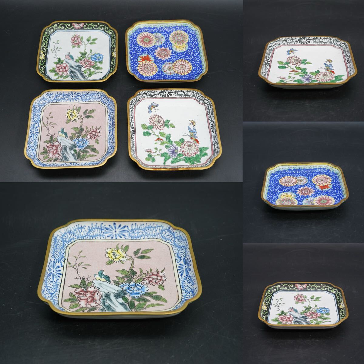 - 粉彩 花鳥図 描金 皿セット 釉上彩 花卉文 金彩 白磁 花蝶図 皿 民國 中国製 骨董 陶磁器 粉彩 異形皿 百花文