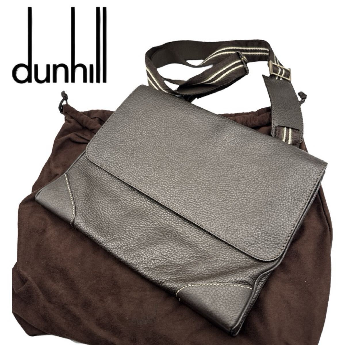 - ★1円~! 美品 dunhill ダンヒル イタリア製 メッセンジャーバッグ シボ革 ダークブラウン A4可 ショルダー カード付 正規品