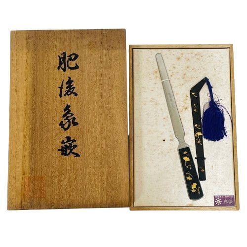 - ♪【肥後象嵌】光助 ペーパーナイフ 栞 セット 銀杏/イチョウ 箱付き★16816