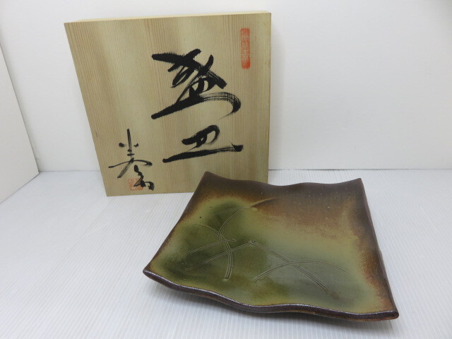> 【中古未使用品】 半右衛門窯 盛皿 角皿 横幅約23.5cm×縦幅約24.5cm 〇YR-12185〇