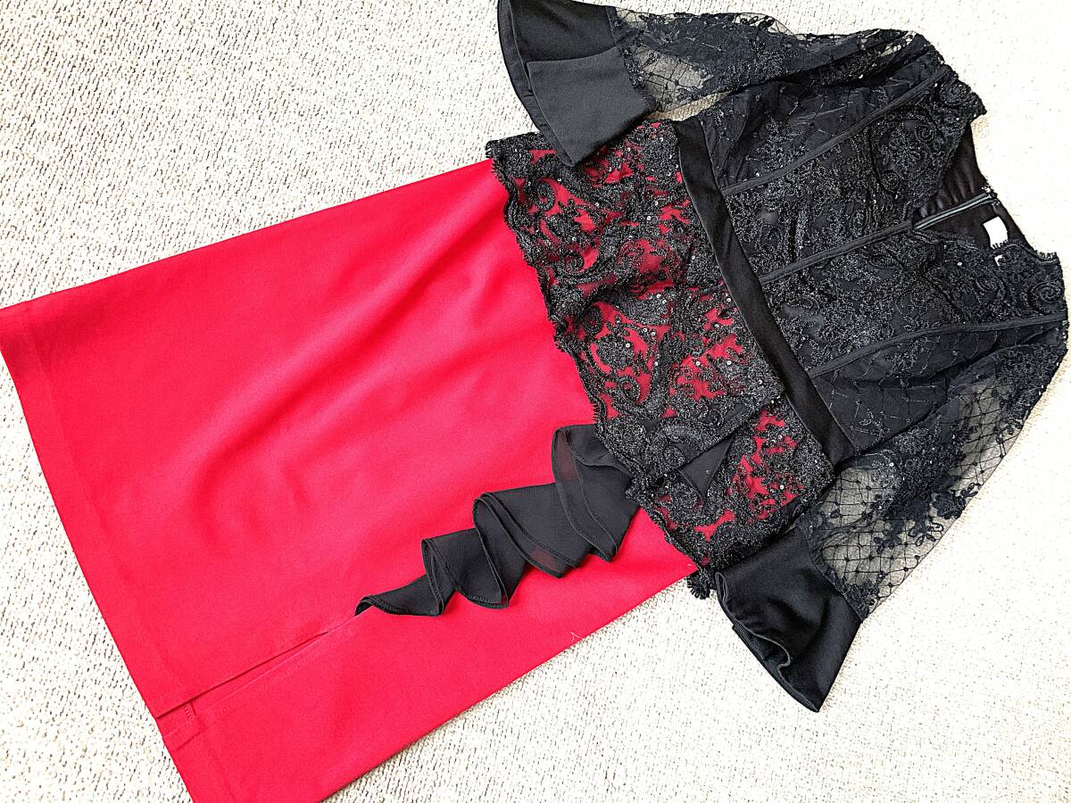 - 447 大きいサイズ XL フォーマルドレス 赤/黒