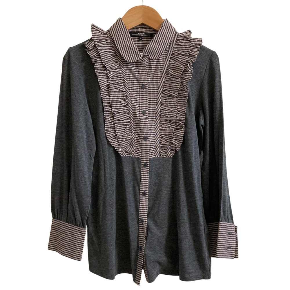 - 美品 Weekend Max Mara ウィークエンドマックスマーラ ボウタイ付き 長袖 フリル ブラウス ブザムシャツ Sサイズ グレー