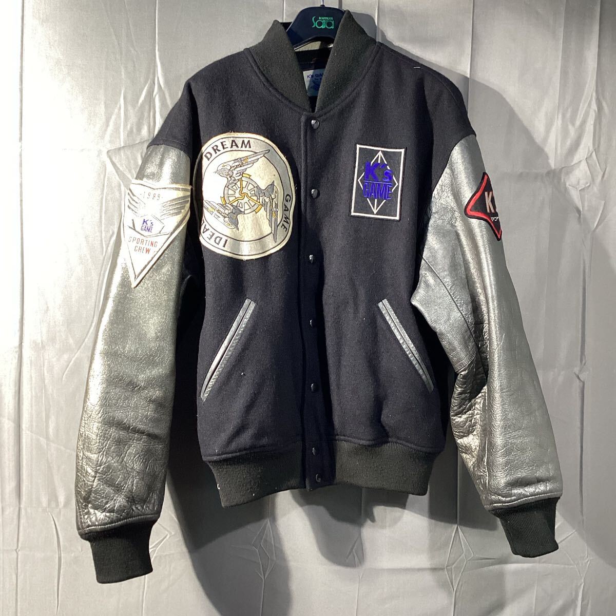- kn437 スタジャン K's GAME ブラック 岩城滉一 レザー 牛革 スタジアムジャンパー 80年代 ファッション アウター XLサイズ程度
