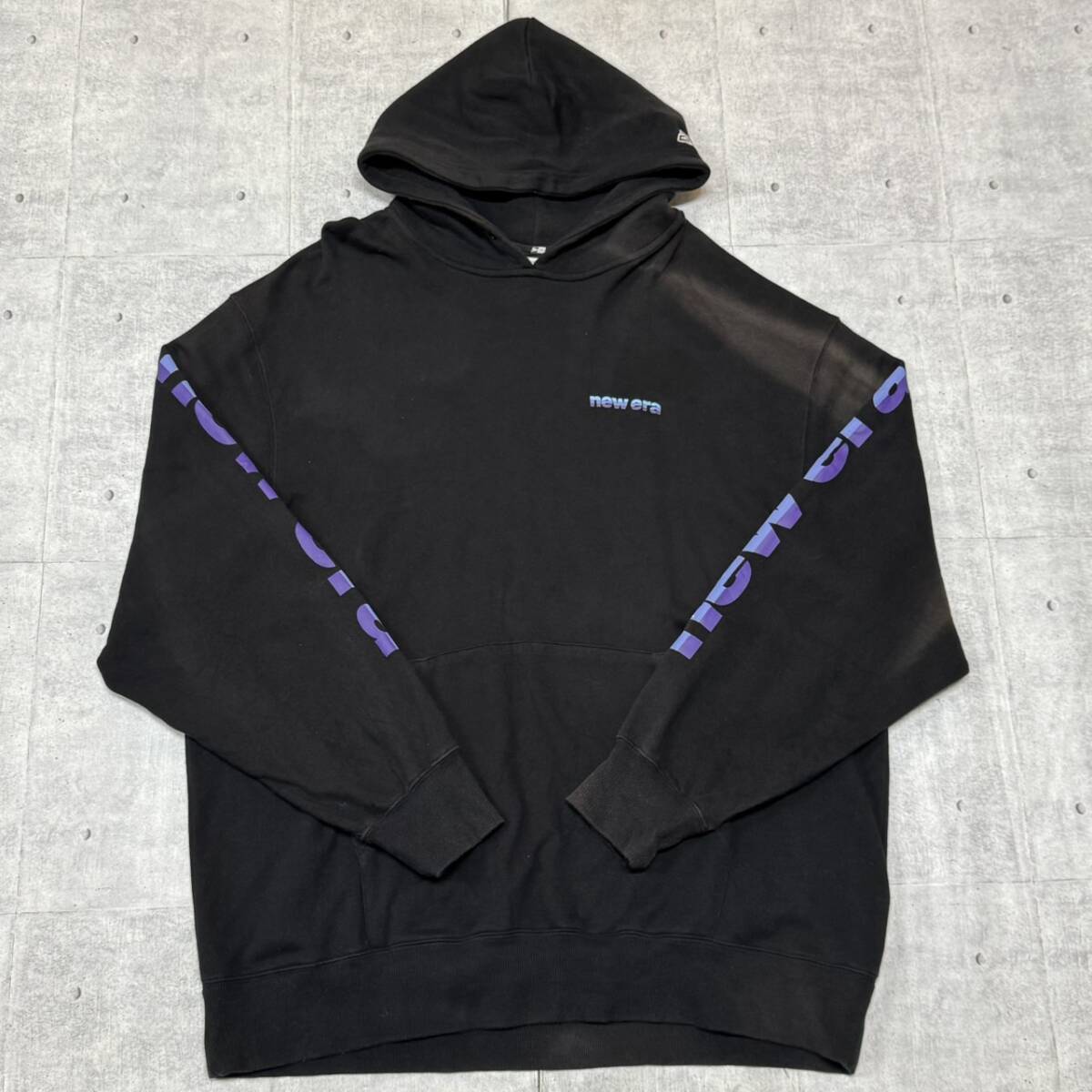 > New Era プルオーバーフーディー ブラック 大きいサイズ 4L ニューエラ パーカー アームロゴプリント グラデーション ゆるダボ 石瀬7766