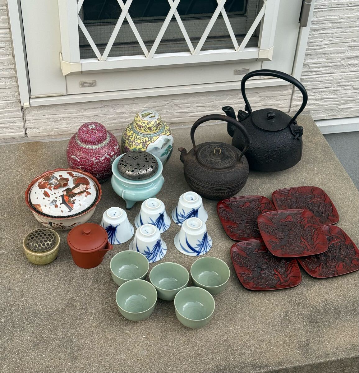 - 急須 まとめて 23点 鉄瓶 鉄器 湯呑 盃 茶器 皿 小皿 九谷焼 朱泥 茶道具 染付 色絵 茶器 時代物 茶碗 煎茶器 香炉 香道具 古美術 京焼