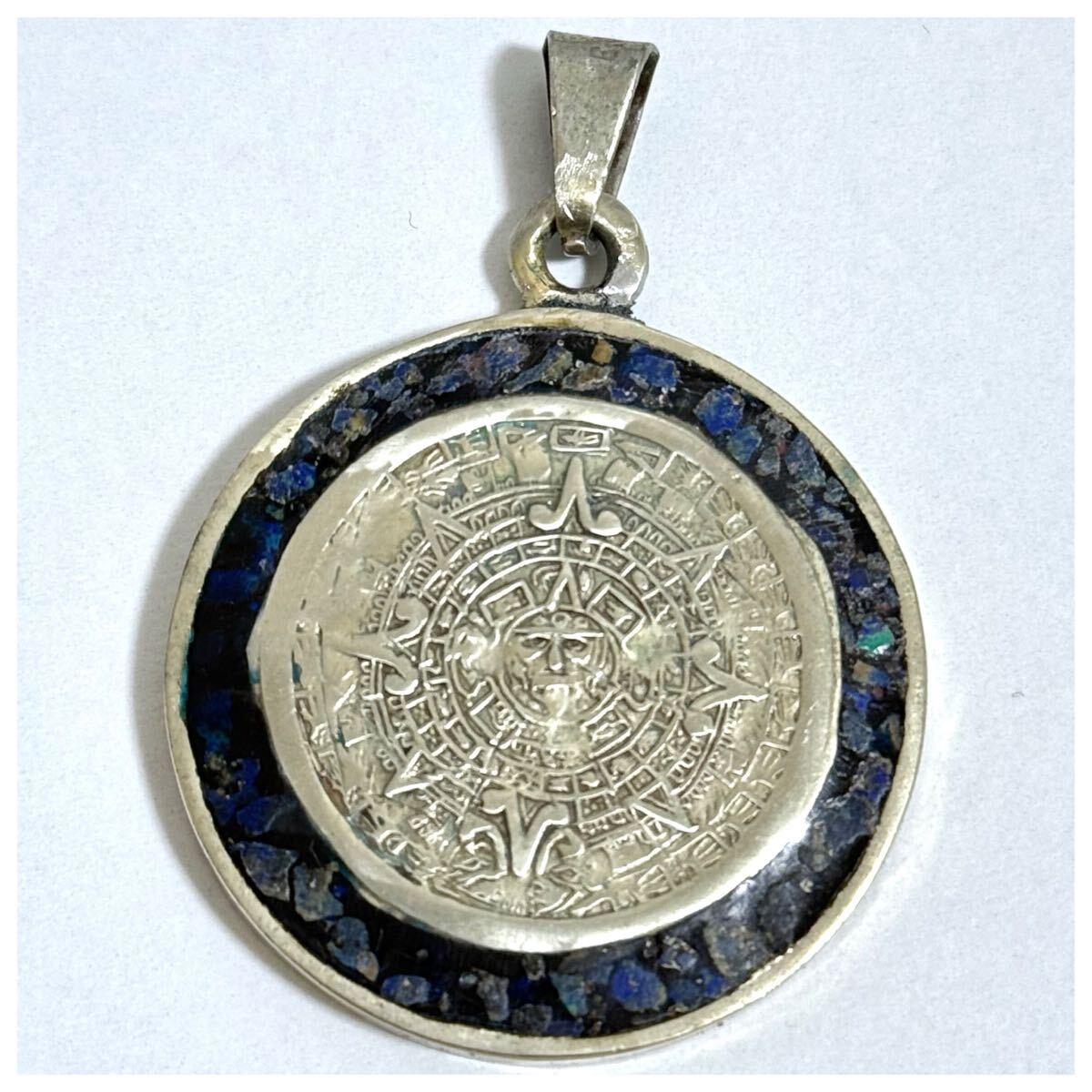 - メキシカンジュエリー MEXICO インレイ コイン ペンダントトップ マヤ文明 アステカカレンダー