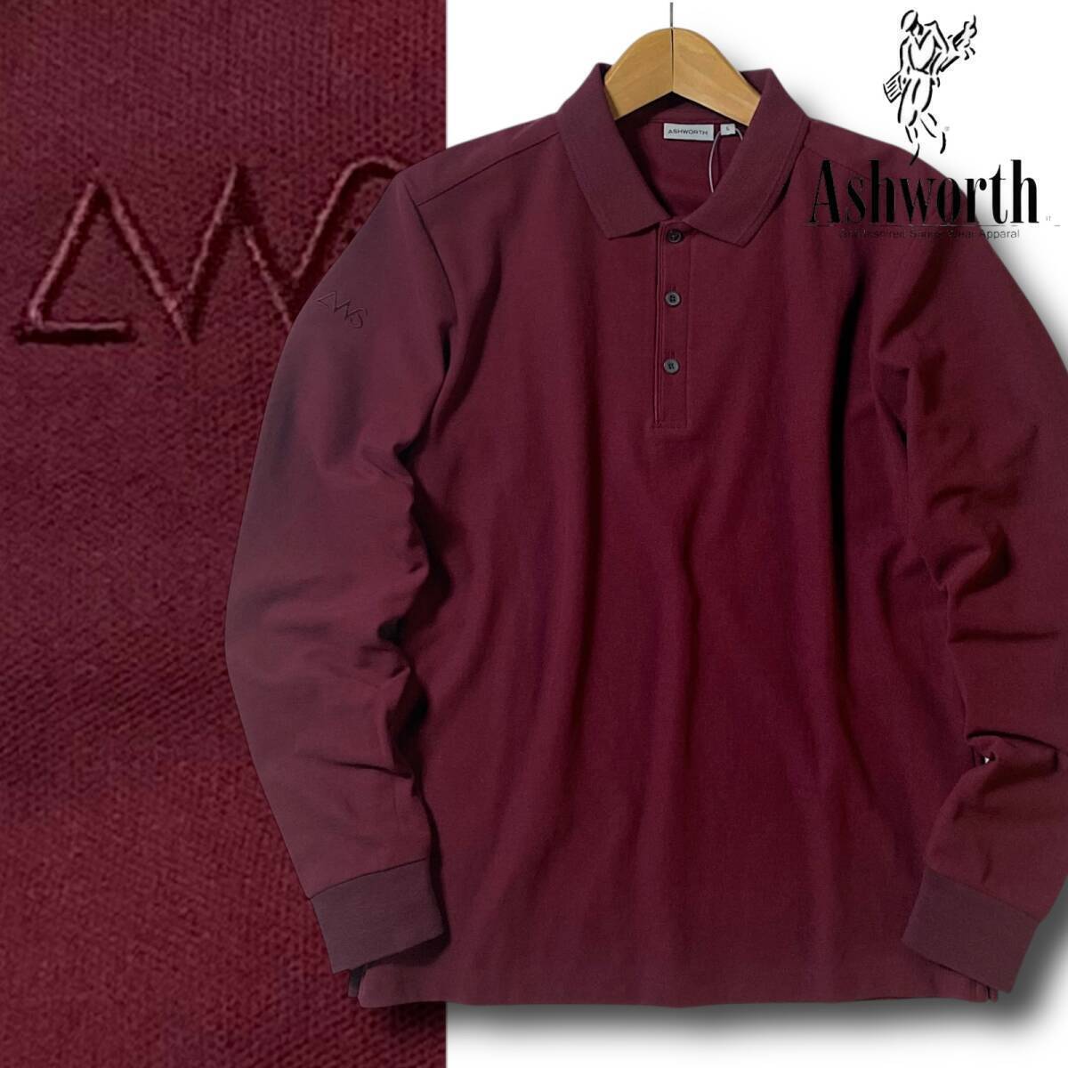 > 新品 アシュワース ゴルフ ASHWORTH GOLF 定1.5万 速乾 UVカット 通気性 ロゴ刺繍入り 鹿の子 ジャージー 長袖 ポロシャツ M 秋冬 P