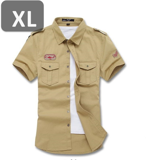 - メンズ 半袖 シャツ カーキ XL 半袖 シャツ 春夏【n199】