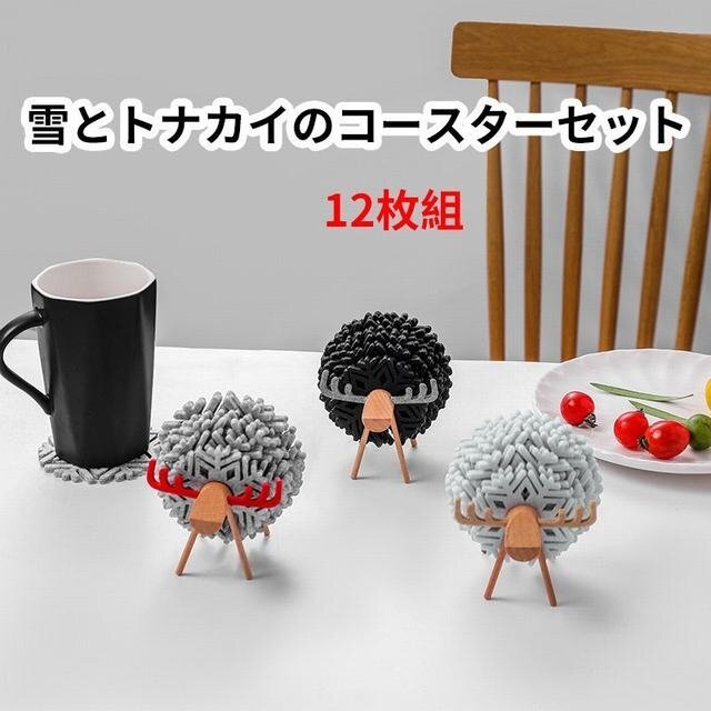 - 雪とトナカイのフェルトコースター シンプル インテリア カフェ キッチンマット12枚セット 鍋敷き カフェマット レターパック グレー