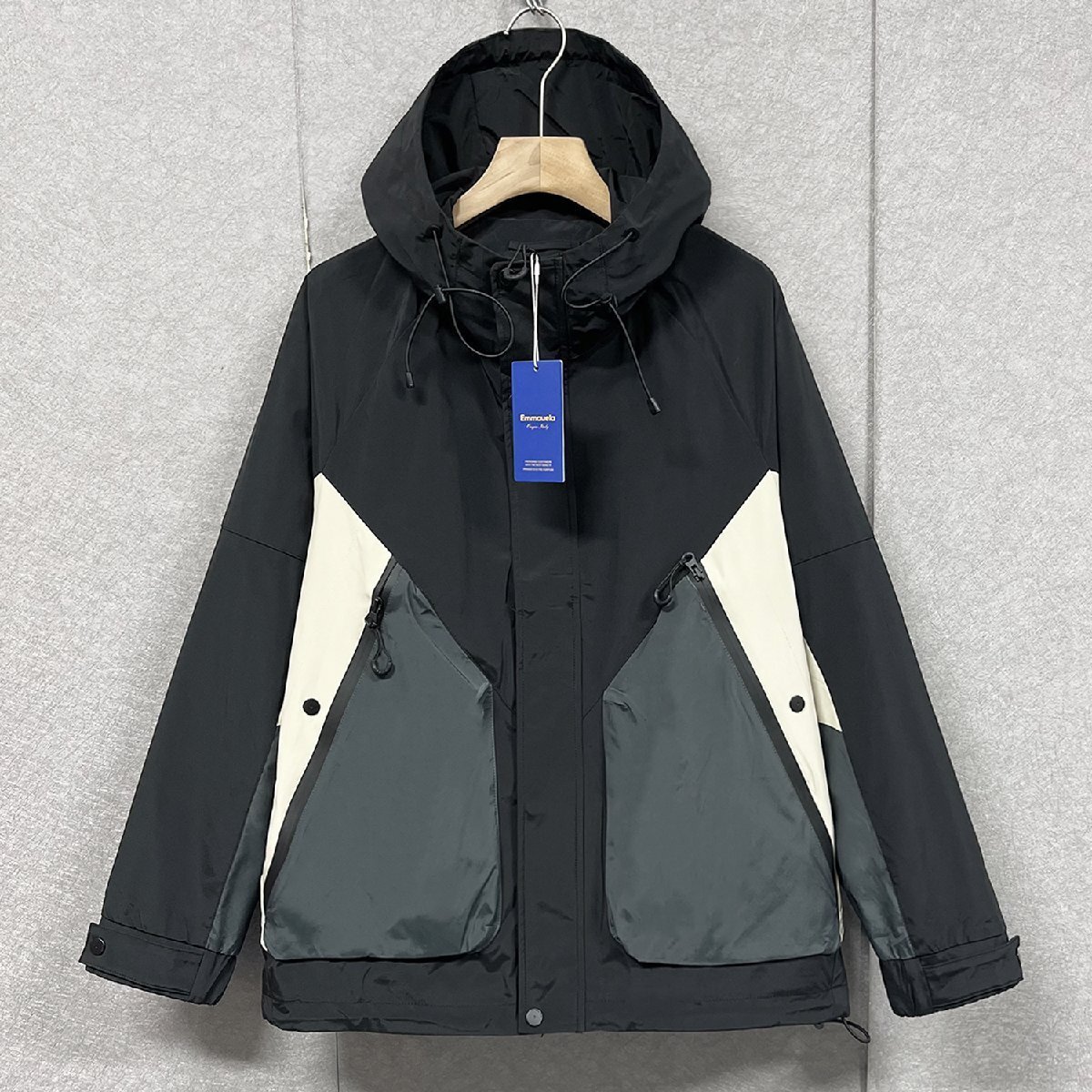 > 高級 ジャケット 定価6万◆Emmauela・イタリア・ミラノ発◆薄手 防風 フード付き 色切替 カジュアル アウター スポーツ 普段着 春 M/46