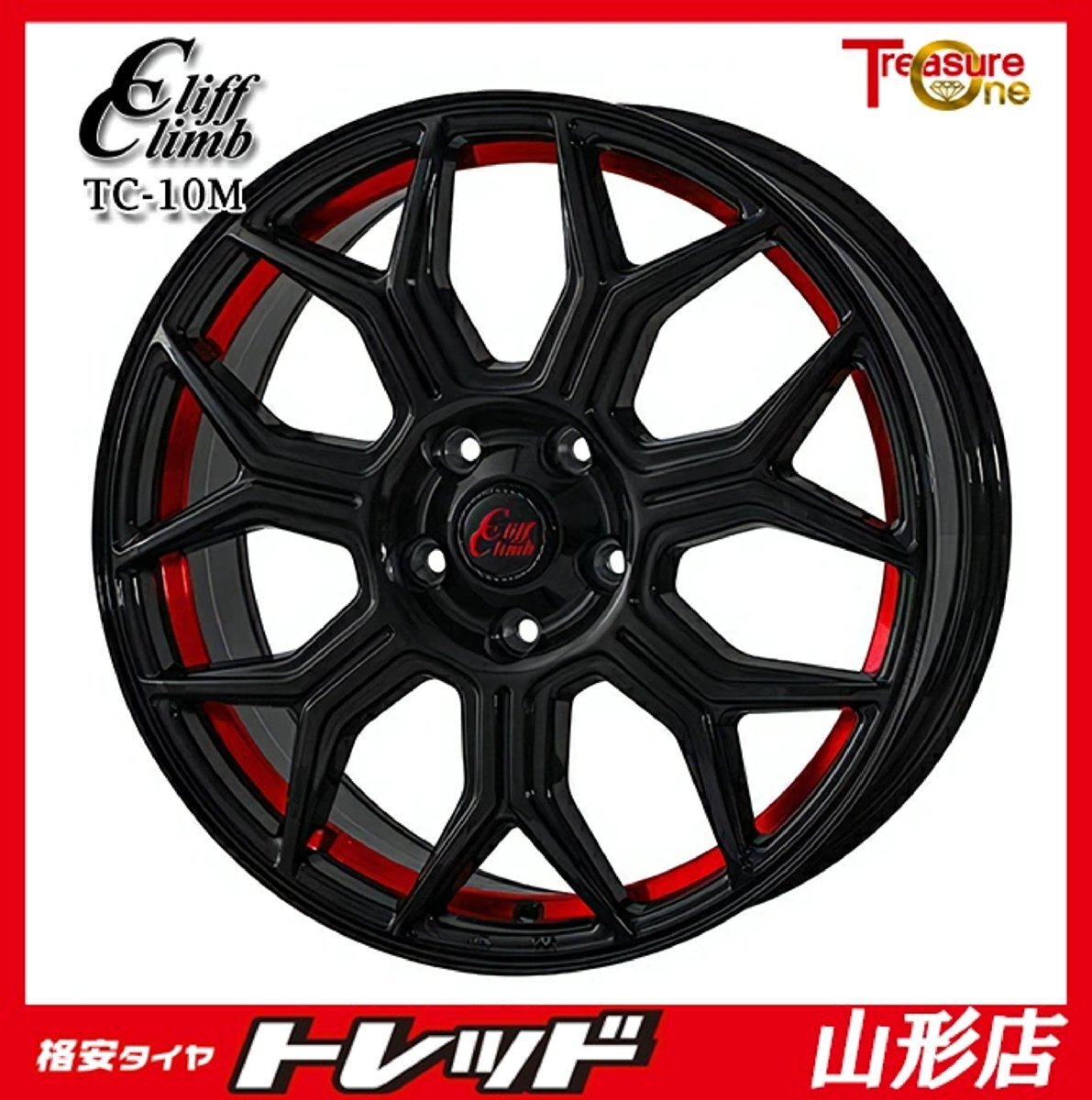 > 山形店 新品アルミホイール単品4本セット クリフクライムTC-10M 18インチ 7.0j 5H100 +48 ブラックレッドアンダーカット プリウス カローラ