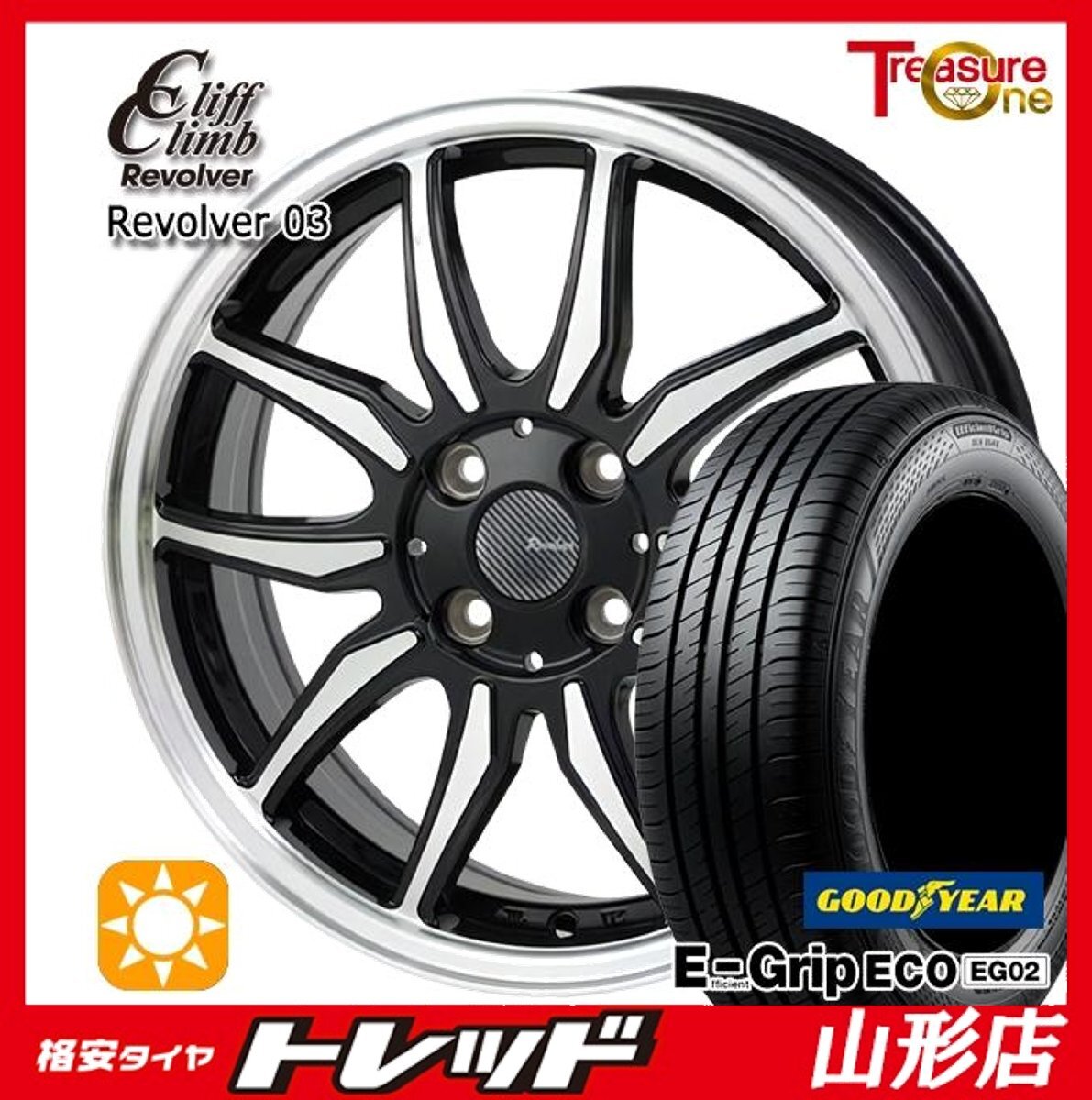 - 山形店 新品 夏タイヤホイールセット CliffClimbリボルバー03 16インチ 6.0j 4H100 +50 BP グッドイヤー EG02 185/55R16 2025年製 フィット