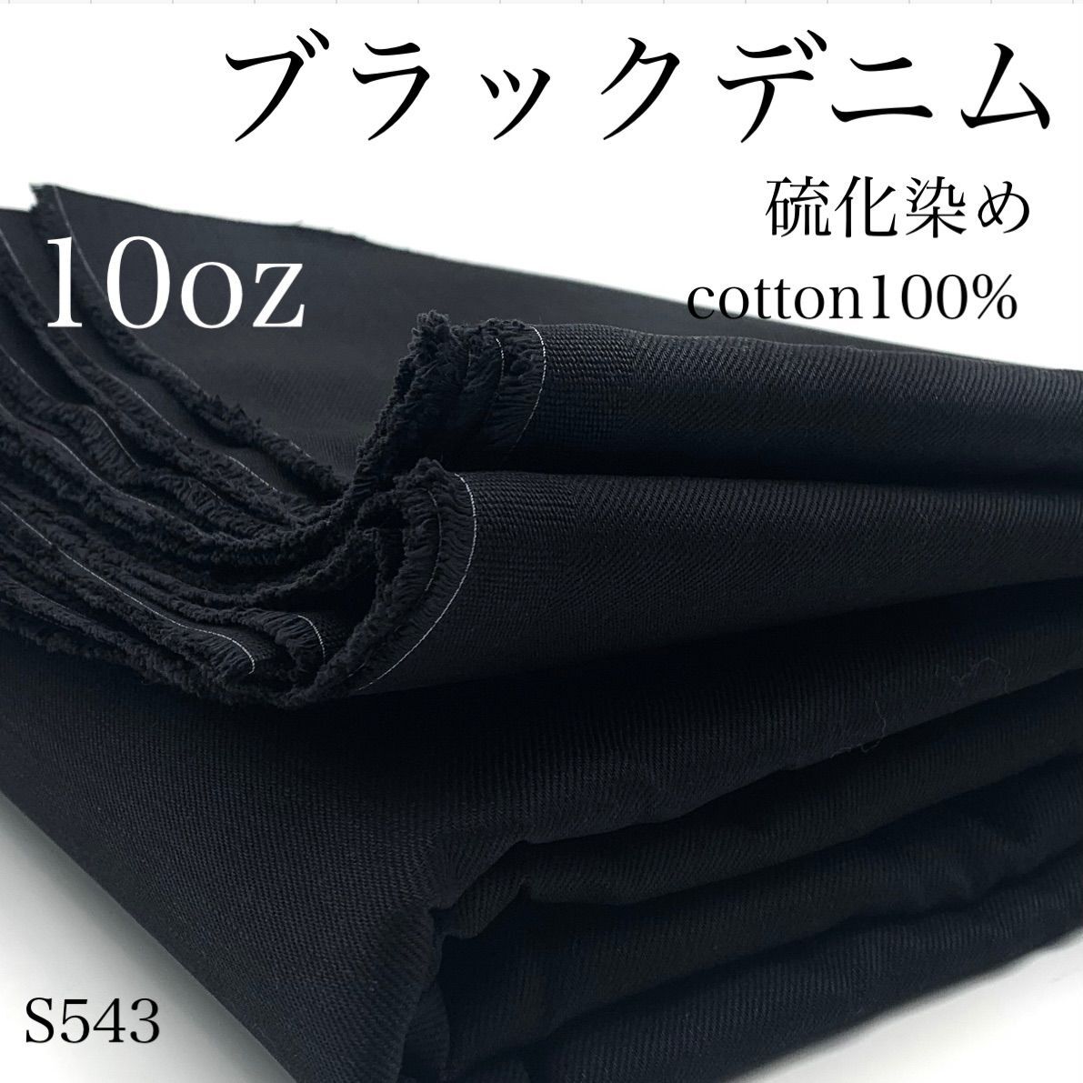 - S543 ブラックデニム 3m 綿100% コットン 10オンス レギュラーオンス 硫化染め ブラック BK 黒 無地 生地 日本製 国産
