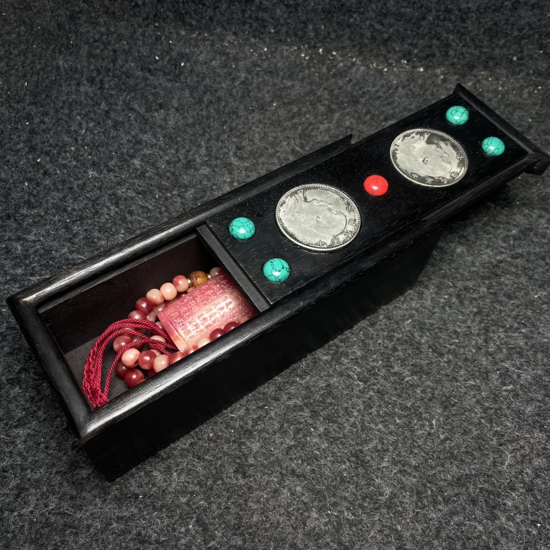 - 旧蔵 牛角彫 佛珠 手持 手串 黑檀木盒 古擺件 古置物 中国古玩 骨董品 時代物 稀少唐物