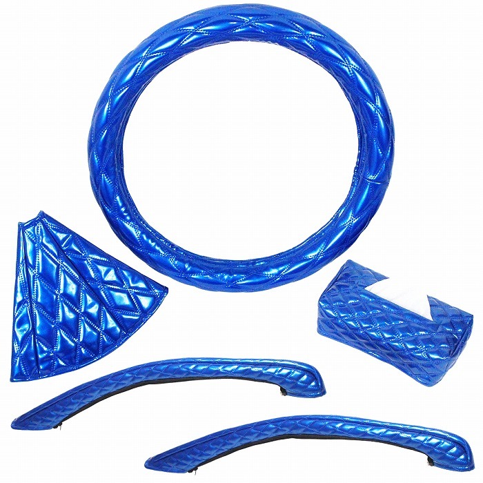 - 車種専用 07yエルフ用 青/ブルー ステアリングカバー&シフトブーツカバー&ドアハンドルカバー&ティッシュカバー