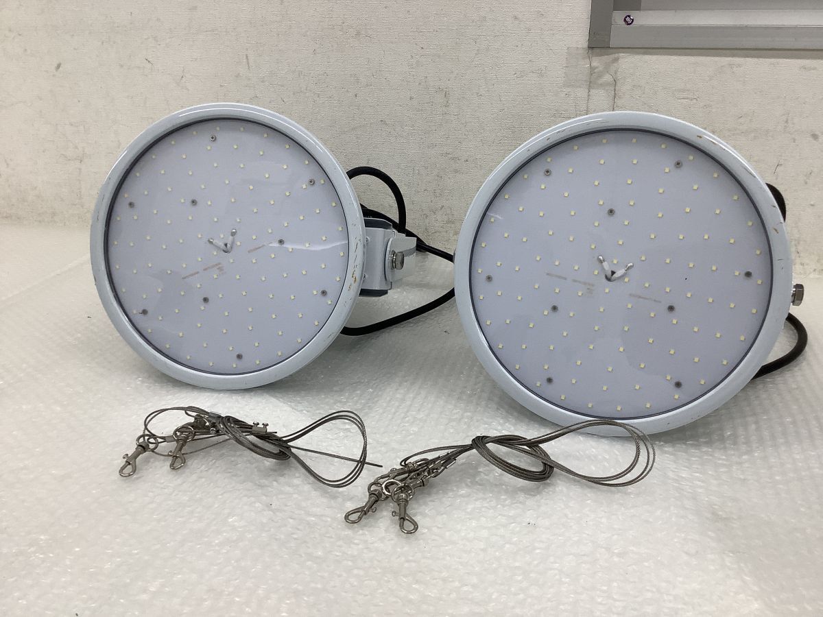 > TK584-140 ①動作確認済み 日動工業 高天井用LED器具 ハイディスク L100V2-P-HW-50K 100W 吊下げクランプ 2台まとめ、ワイヤー4本