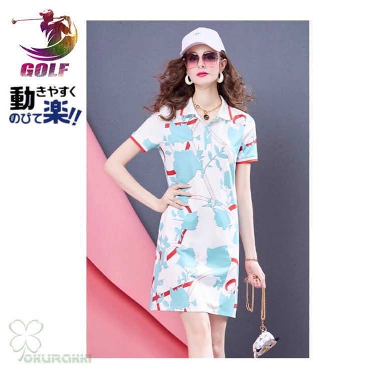 - ゴルフウェア レディース ゴルフ ドレス ワンピース 丈長め ゴルフ スカート 半袖ワンピース 春 夏 新作 立体裁断