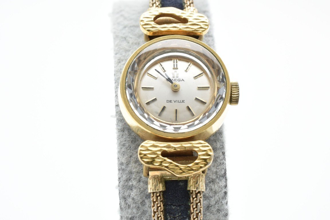 > OMEGA オメガ DeVille デビル 腕時計 レディース 手巻き ゴールド シルバー文字盤 カットガラス ラウンド 2針 ブレスウォッチ