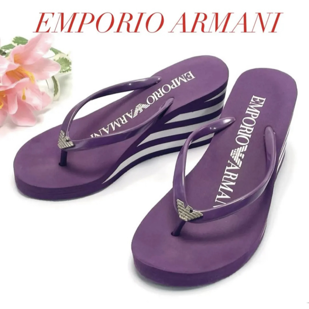 - EMPORIO ARMANI エンポリオ アルマーニ 厚底 プラットホーム トング サンダル ビーチサンダル パープル 紫 レディース ブランド ロゴ