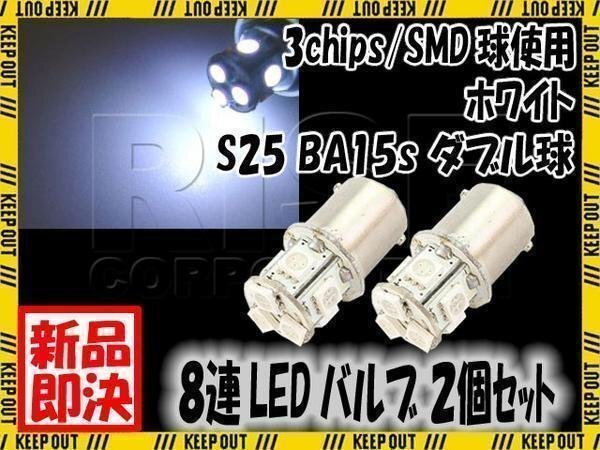 G18 S25 8連 SMD LED バルブ ホワイト 発光 ダブル球 2個セット拍卖
