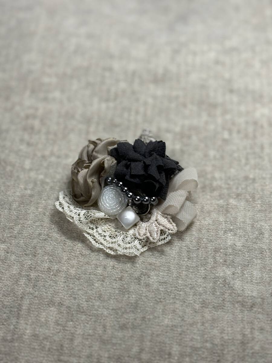 - ★「カワイイ」をぎゅっと コサージュ ブローチ ハンドメイド ベージュ×グレー⑤