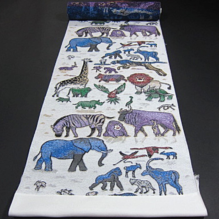 - 新柄 新品未仕立 西陣織高級六通柄丸巻袋帯 サファリ 動物 ゾウ キリン ライオン