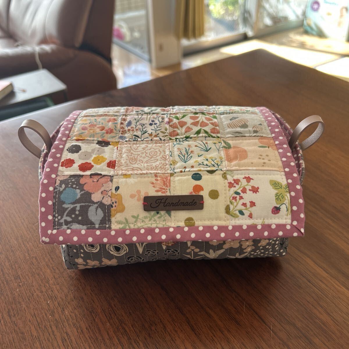 - Farm garden×パープルドット パッチワーク四角繋ぎ蓋付きキルティングボックス ハンドメイド デコレクション 花柄