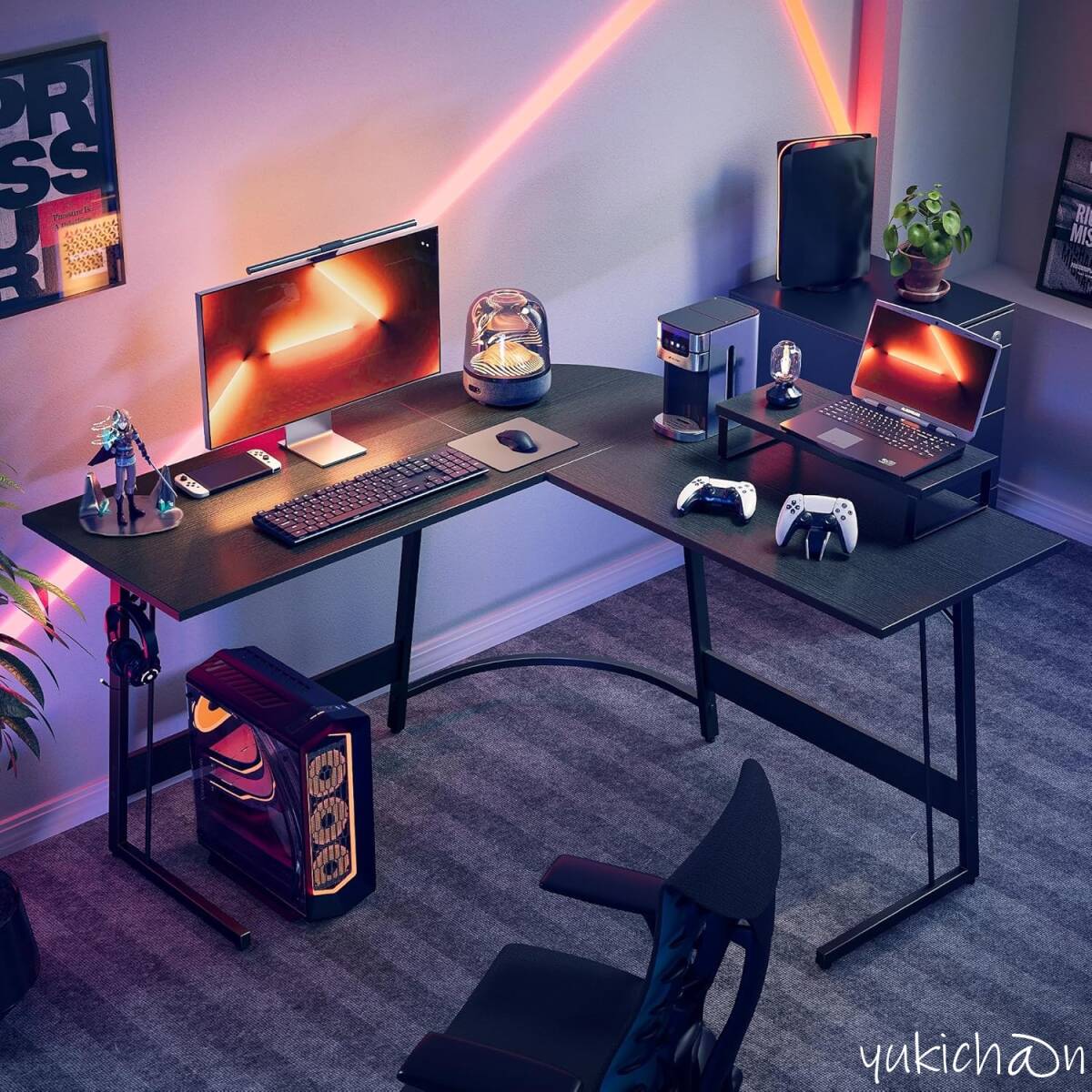 - l字デスク パソコンデスク ゲーミングデスク ブラック L字 コーナー ワークデスク 作業机 モニター台付き 在宅勤務 幅120x120cm