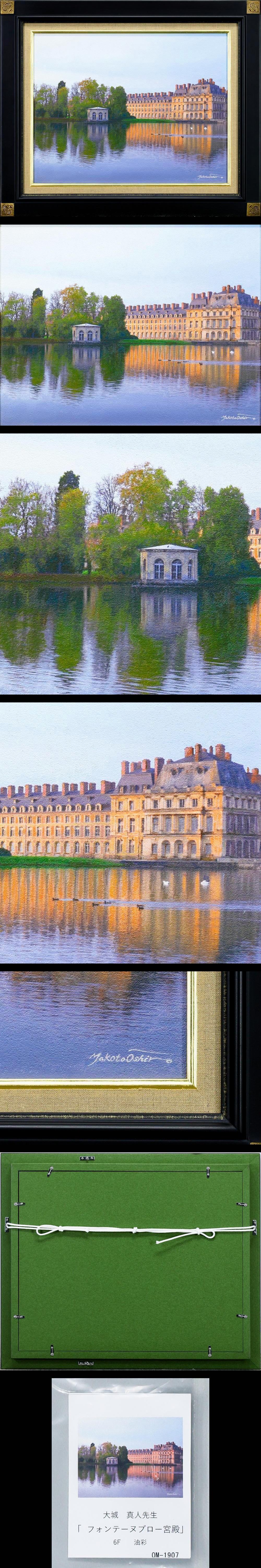 - 【真作】【WISH】大城真人「フォンテーヌブロー宮殿」油彩 6号 ◆澄んだ水面に映る湖畔の宮殿名画 〇リアリズム巨匠 #25112689