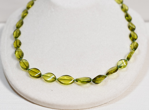 - Ж100~リトアニア産天然グリーンアンバー マーキスウェーブカット 琥珀 64.5㎝ 13g ネックレス