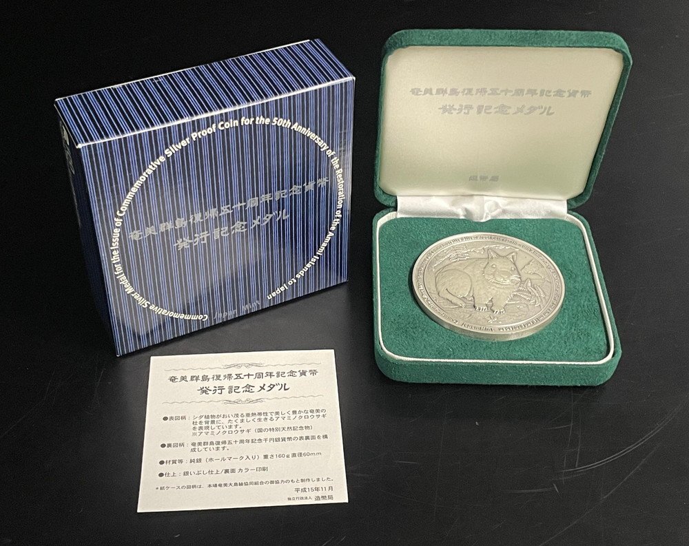 > 【6P4142】1円スタート 奄美群島復帰五十周年記念貨幣 発行記念メダル アマミノクロウサギ 純銀 SILVER刻印 造幣局 ケース付 コレクション
