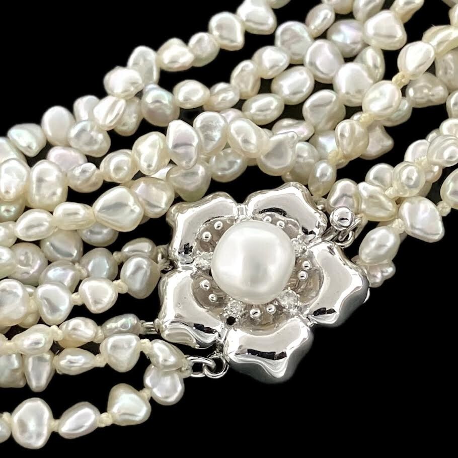 > 仙104 淡水真珠 パール 5連 ネックレス K14WG 刻印 ホワイト 白 ホワイトゴールド 14K 585 14金 レディース バロック ケシパール