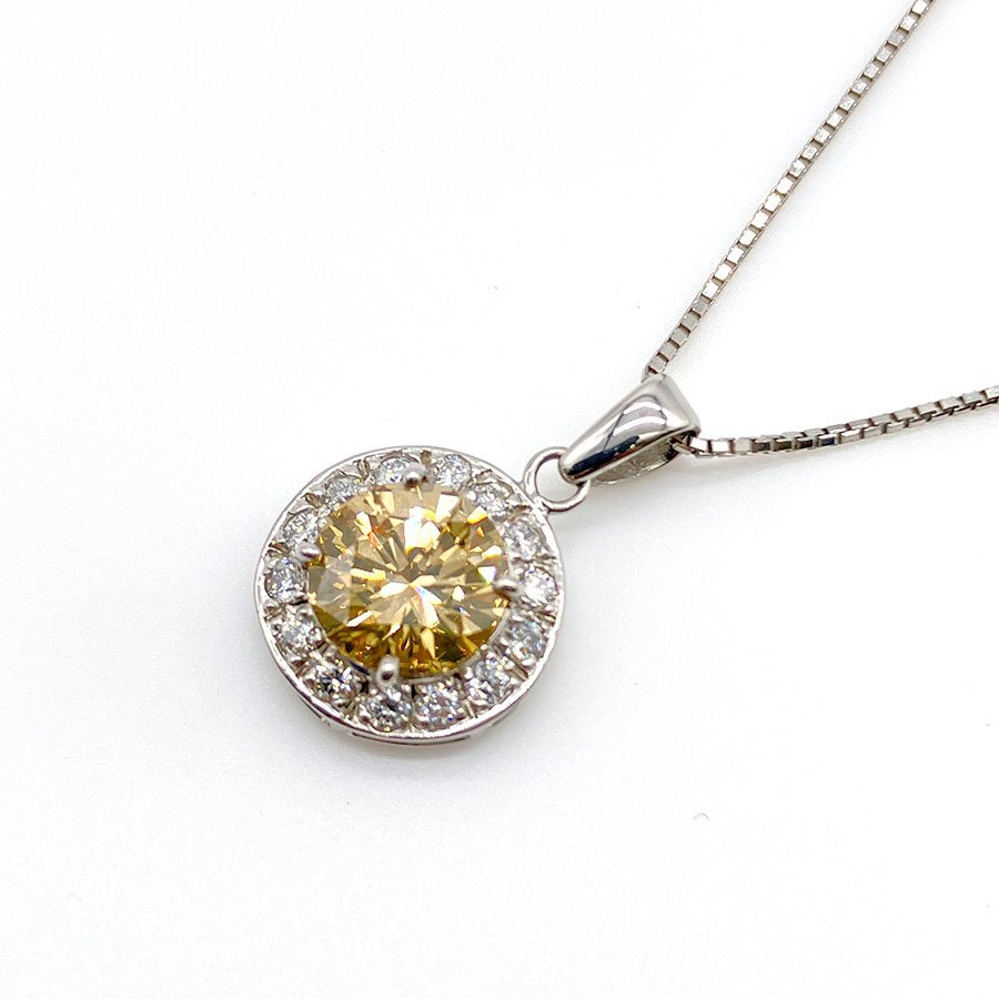 - g21541 Pt850/900 D1.15ct(FANCY ORANGY BROWN/SI-2) FD0.21ct ネックレス USED 美品 3.9g 45cm アジャスター付 ソーティング付
