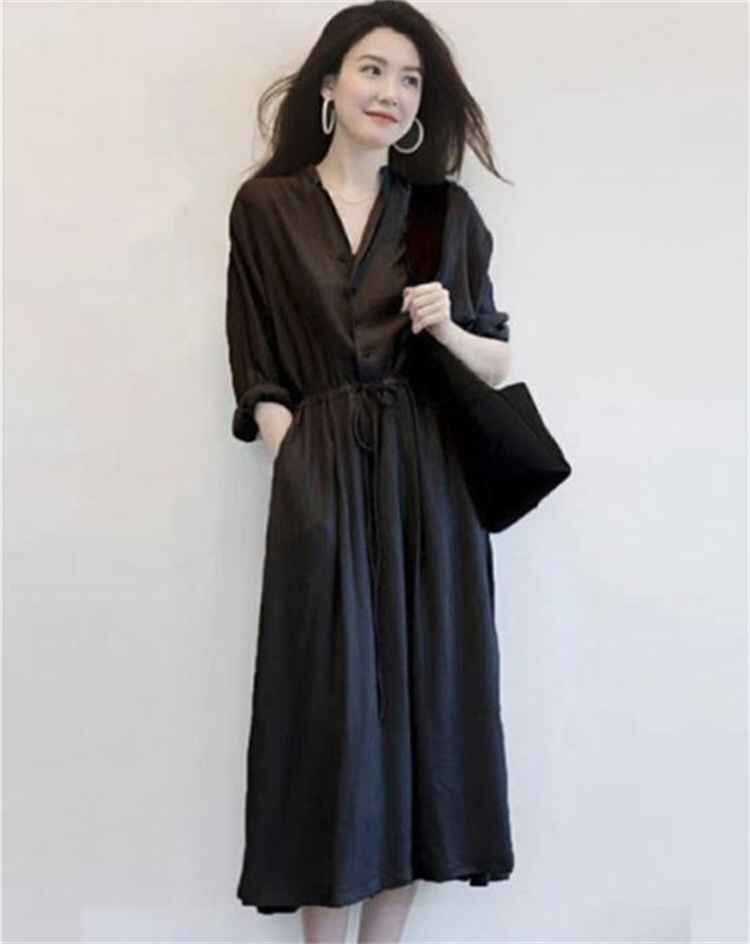 - 大きいサイズ カジュアル Vネック ロング丈 ワンピース 4XL ブラック
