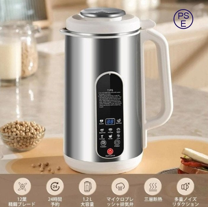 - 豆乳マシーン ジューサーミキサー スープメーカー お粥メーカー 豆乳ブレンダー 1.2L 自動調理 濾過不要 24時間予約機能 (A1950)