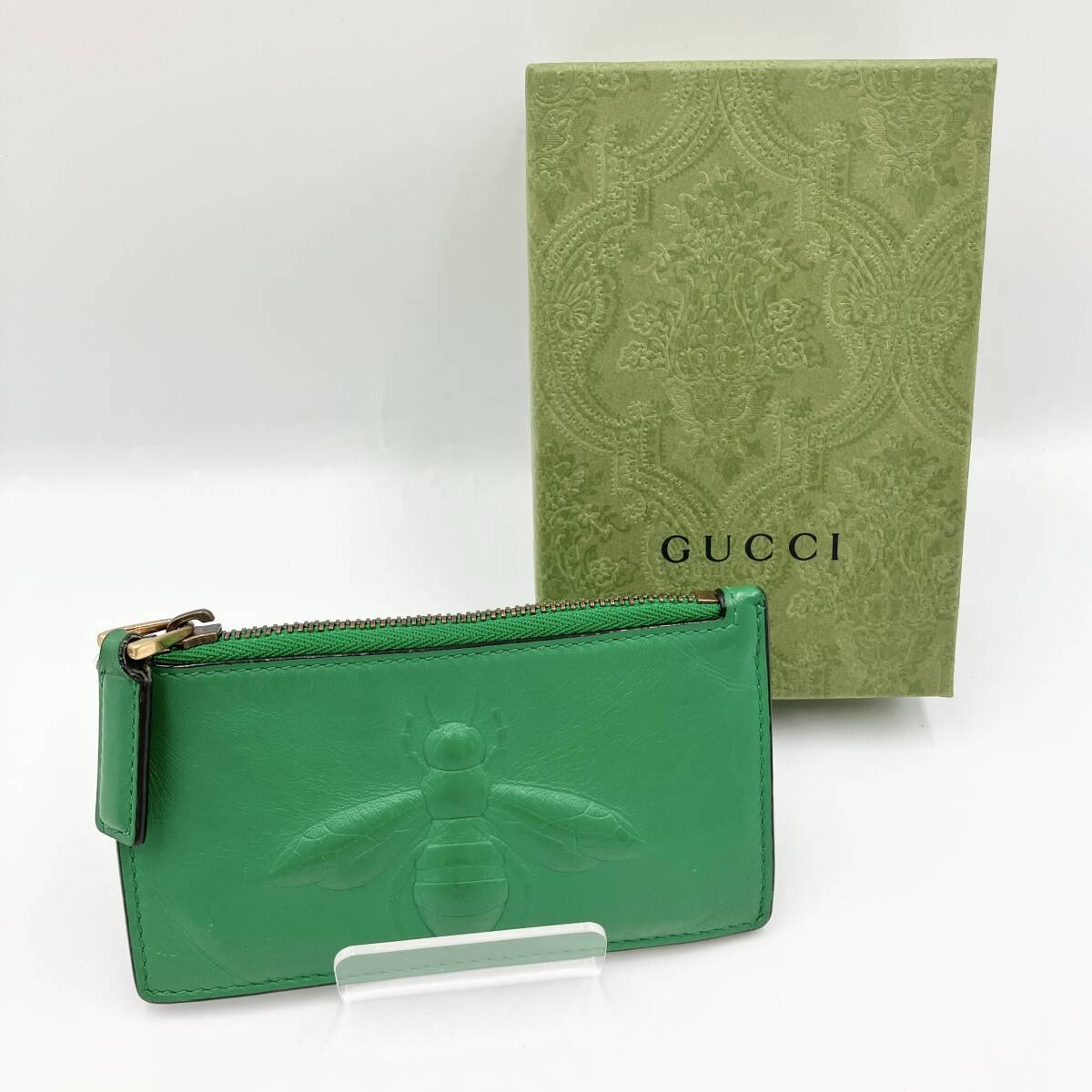 - GUCCI グッチ アニマリエ ビー 蜂モチーフ カードケース コインケース 小銭入れ レザー グリーン 緑 451184