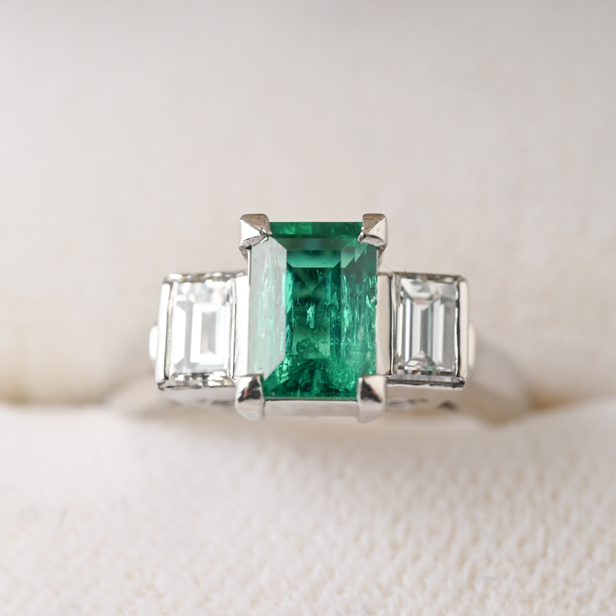 - 【鑑別書付】天然 エメラルド 0.64ct ダイヤ 0.40ct P.M 900 刻印有 指輪 約8号 プラチナ ヴィンテージ レディース F