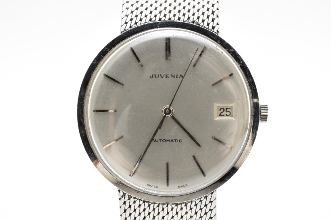 - 稼働品 ジュベニア 自動巻き 手巻き シルバー 3針 デイト ステンレス AUTOMATIC ヴィンテージ メンズ 腕時計 JUVENIA