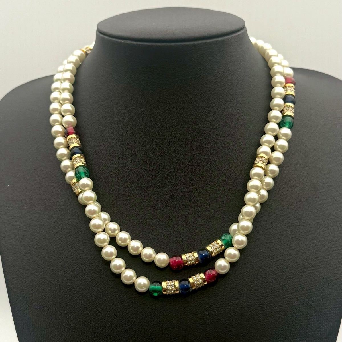 - 【超希少・極美品】Christian Dior クリスチャンディオール ネックレス チョーカー パール カラーストーン ラインストーン ゴールド ロング