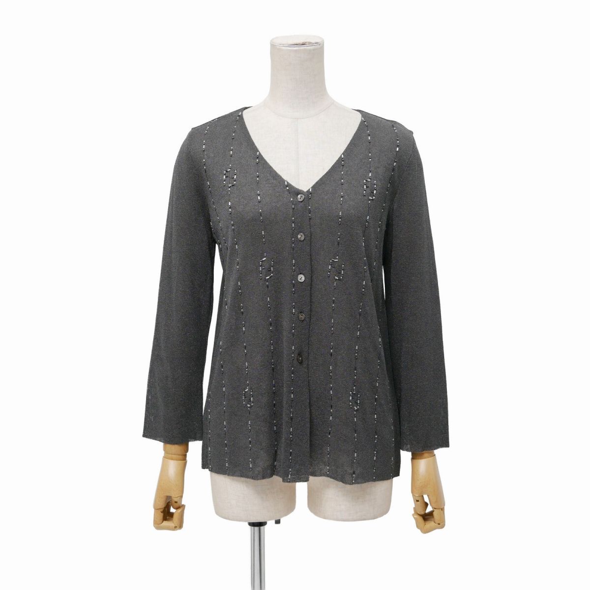 > GT1859〇未使用*イタリア製*フェンディ/FENDI*ビーズ刺繍 FFロゴ*ラメニットカーディガン*サイズ42*グレー系