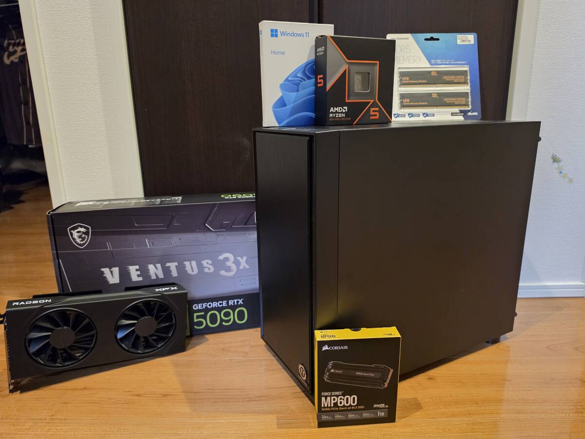 - 【1円~】極美品 RTX 5070 / Ryzen5 9600X / 新品DDR5 32GB / Win11正規版付 / 予備RX 9060 XT & 5090ジャンク付属!爆速ゲーミングPC