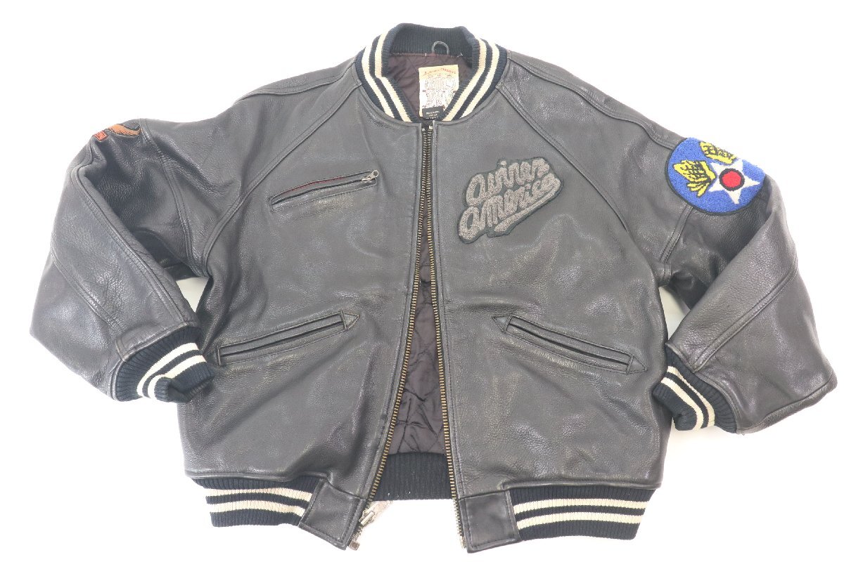 - AVIREX アヴィレックス × Classic スタジャン レザー ジャケット ブルゾン サイズ L ワッペン ブラック 系 メンズ 9118-NA